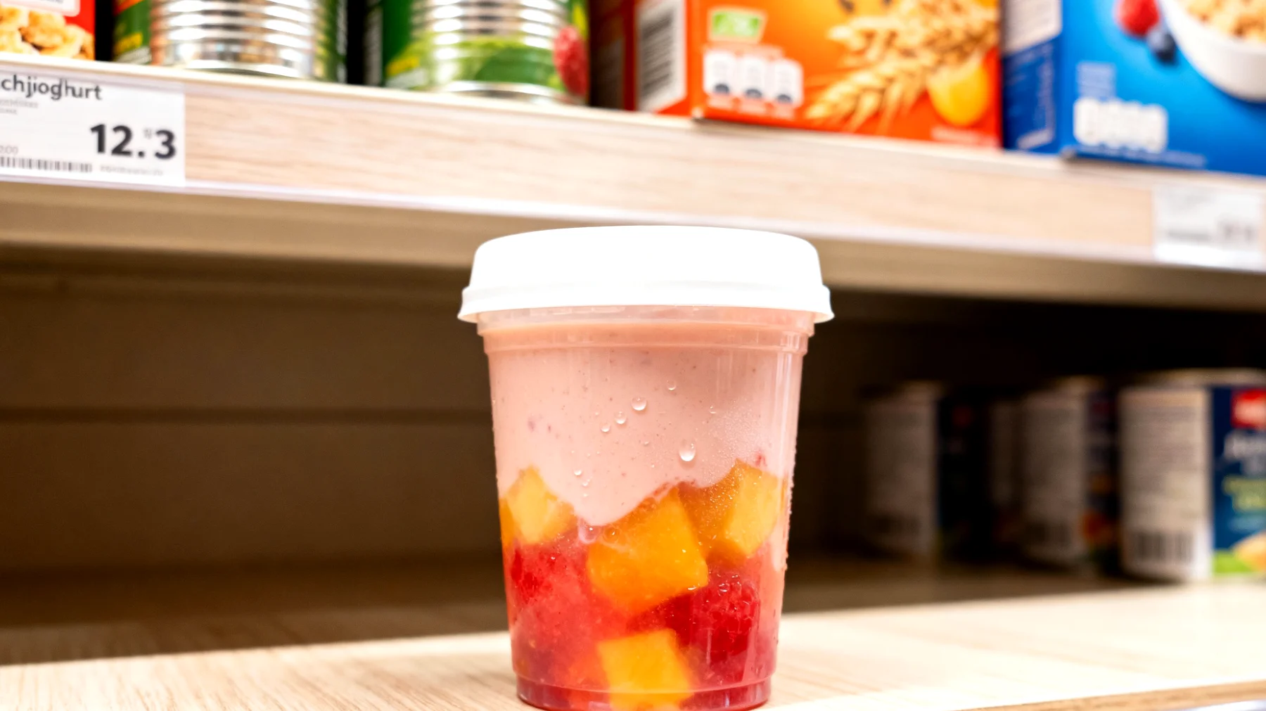 - Becher aus den hinteren Reihen nehmen – dort stehen oft die frischeren Produkte