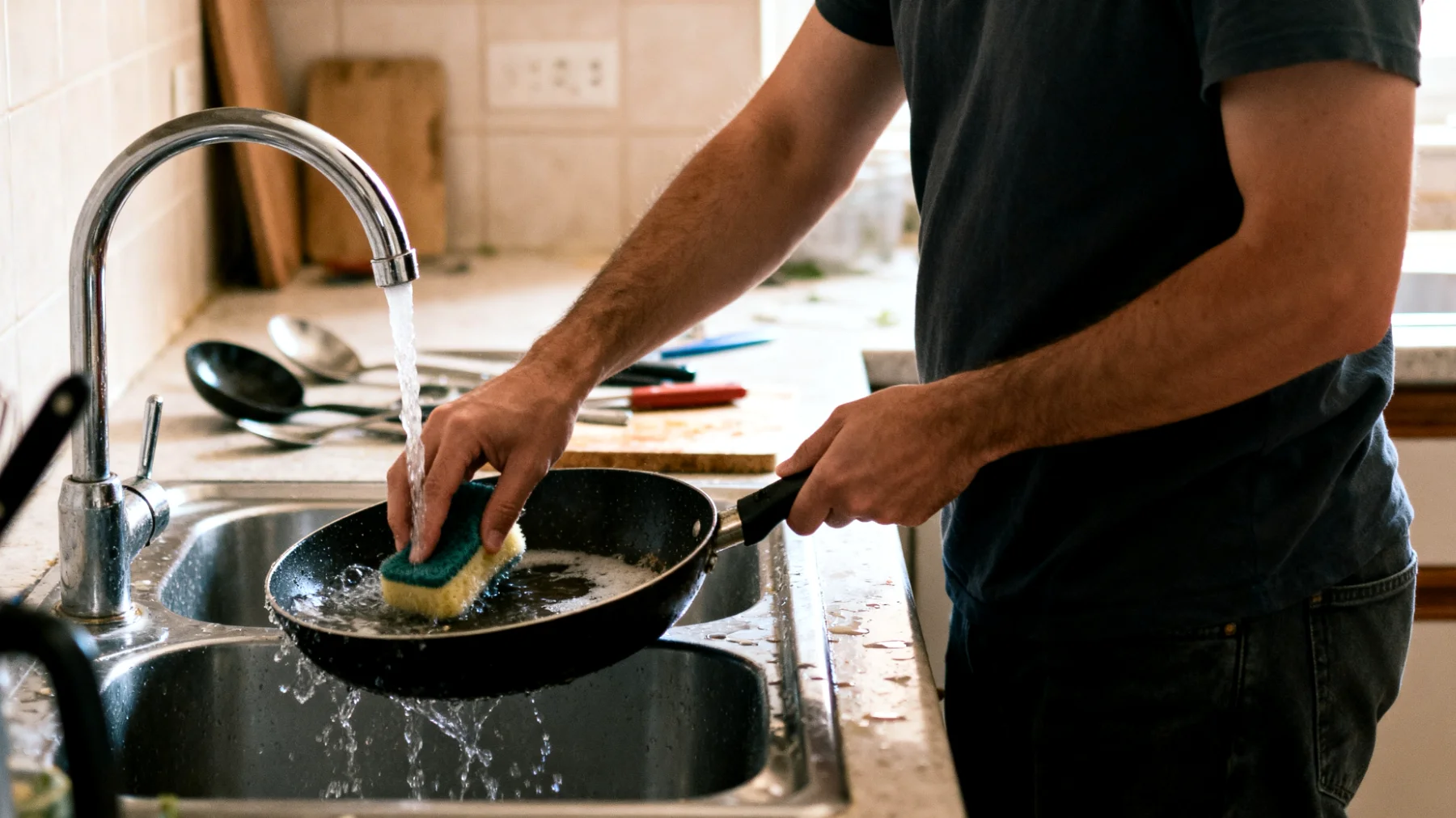 Sobald eine Pfanne handwarm ist (etwa zwischen 40 und 60 Grad Celsius), beginnen die idealen Bedingungen zur Reinigung. Warmes Wasser hilft, Fette in Lösung zu bringen, ohne thermischen Schock auszulösen. Kaltes Wasser dagegen lässt Fettpartikel verhärten, besonders bei tierischen oder gesättigten Ölen.