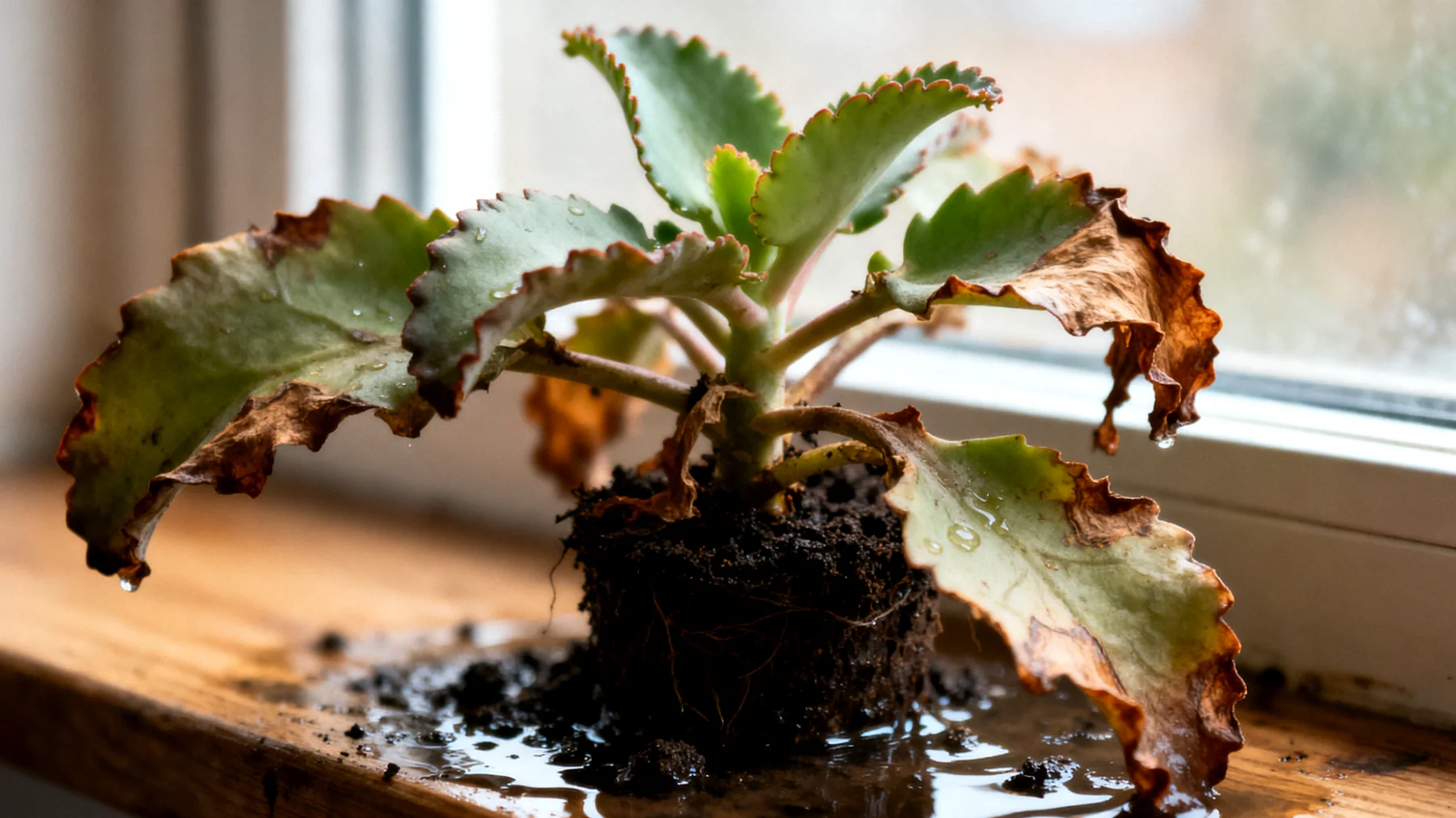 Die Wurzeln der Kalanchoe sind fein und empfindlich. Sie brauchen Luftzirkulation im Substrat, um gesund zu bleiben. Steht die Erde dauerhaft nass, kollabiert dieses System innerhalb weniger Tage. Die Schädigung beginnt unsichtbar im Topf und zeigt sich erst, wenn bereits ein Großteil des Wurzelgeflechts betroffen ist.